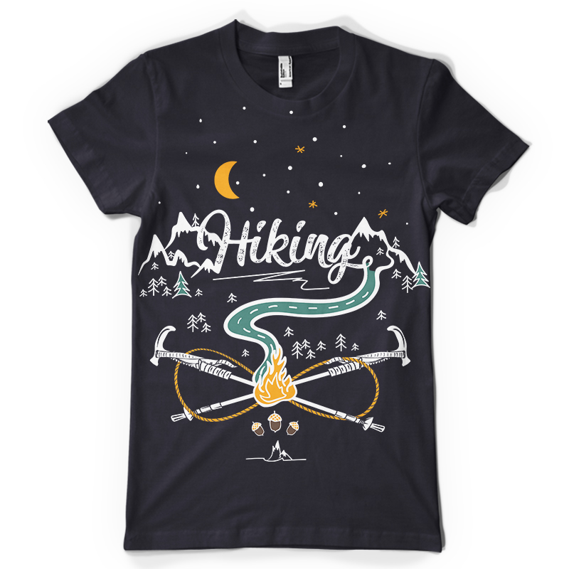Hiking is an illustration made in Adobe Illustrator,featuring a cool design for the travellers.It can be used on digital printing,screen printing and T-shirt design and it is available in AI,EPS,PNG and PSD format file.