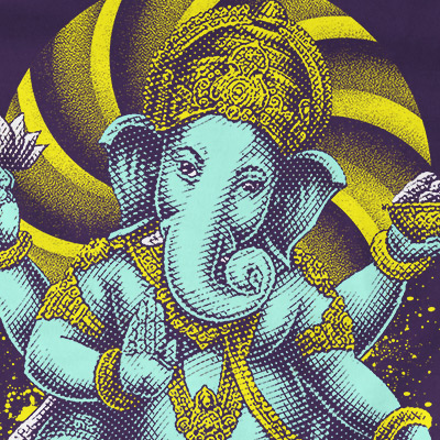 Hindu goddess features a Ganesh design with detailes. Screen print now available for Adobe Photoshop and can be used for digital printing and screenprinting