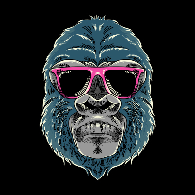 Vector illustration of King Kong. Hipster style, Head King kong with sunglasses.