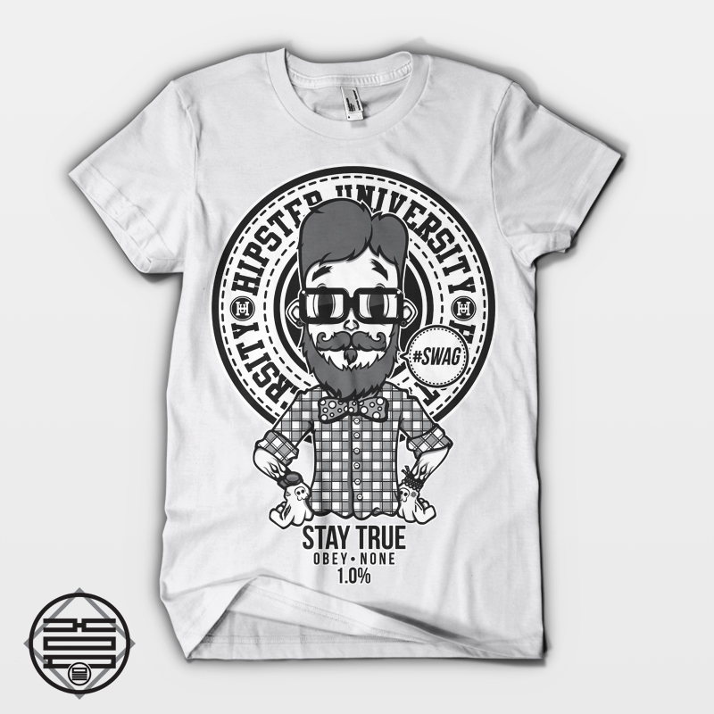 Hipster U T-shirt design template in vector format, featuring detailed funky hipster now available for Adobe Illustrator and can be used for digital printing and screenprinting .