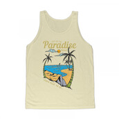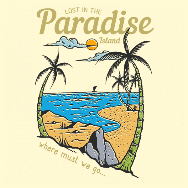 Vector illustration of palm tropical beach on summer with sunset background. Ready to print on t-shirt.