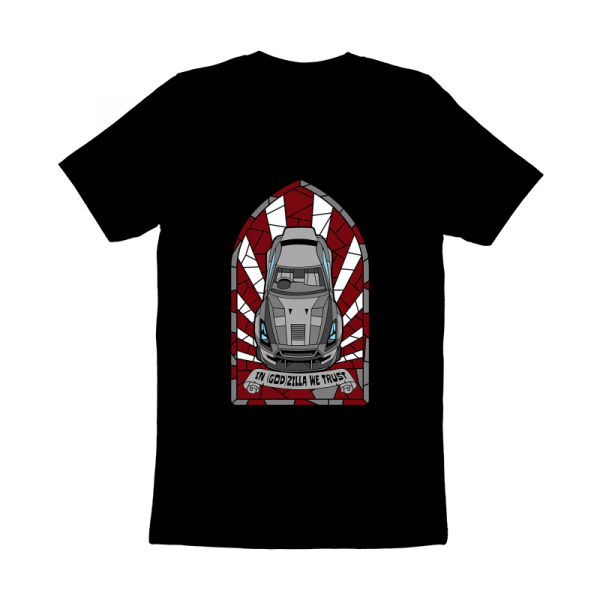 inspired by the art of stained glass. and the god-zilla wordplay. aimed at those who adore this GTR car. original design from pujartwork. modern classic and pop culture style