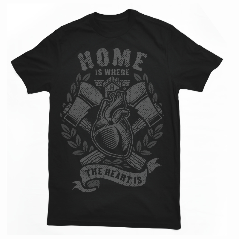 Home Is Where the Heart Is T-shirt design template with CorelDraw or Adobe Illustrator 2 colour print, CDR,AI,PSD separated Layers. Can be used for digital printing and screen printing.