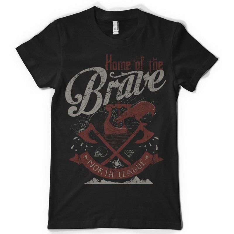 Home of the brave printed t-shirt features a detailed screen print of sailboat and axes now available for Adobe Illustrator, Adobe Photoshop and Corel Draw and can be used for digital printing and screenprinting .