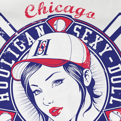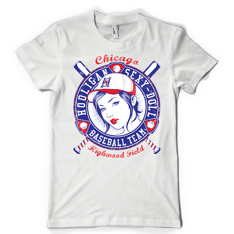 Hooligan t-shirt design features a pin-up sport detailed screen print now available for Adobe Illustrator, Adobe Photoshop and Corel Draw and can be used for digital printing and screenprinting .