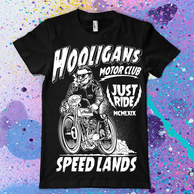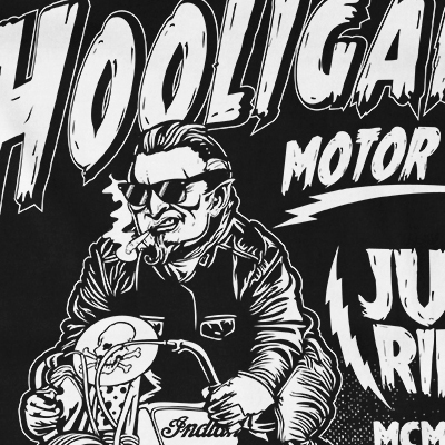 Hooligans t-shirt design features a motor club design detailed screen print now available for Adobe Illustrator, Adobe Photoshop and can be used for digital printing and screenprinting.