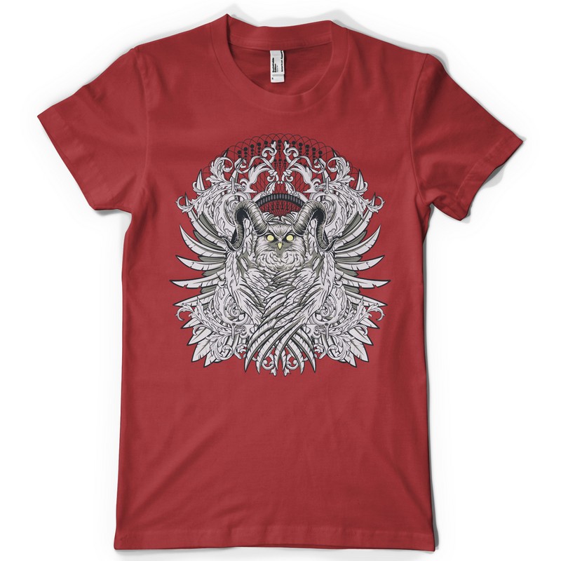 Horned Owl printed t-shirt features a detailed screen print of creepy owl now available in EPS format file and can be used for digital printing and screenprinting . Ready to print or use in anything you want.