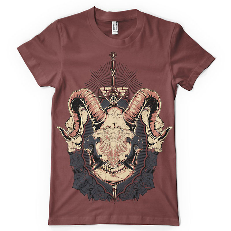 Horned shield printed t-shirt features a detailed screen print of protection shield now available for Adobe Illustrator, Adobe Photoshop and Corel Draw and can be used for digital printing and screenprinting . Ready to print or use in anything you want.