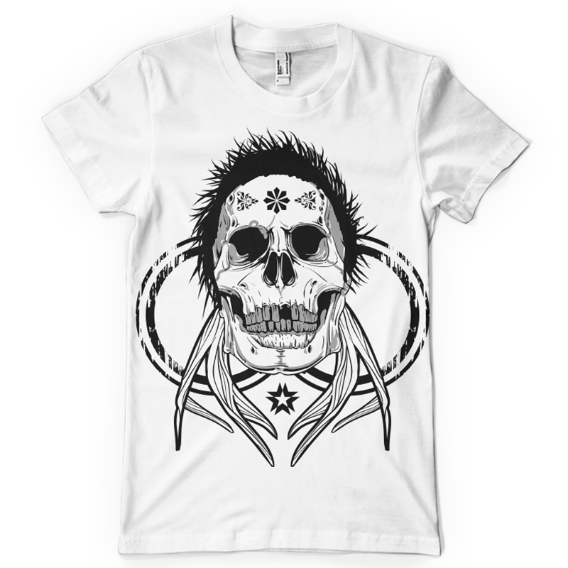 Horned skull t-shirt print features a detailed design available for Adobe Illustrator, Adobe Photoshop and Corel Draw and can be used for digital printing and screenprinting . Ready to print or use in anything you want.
