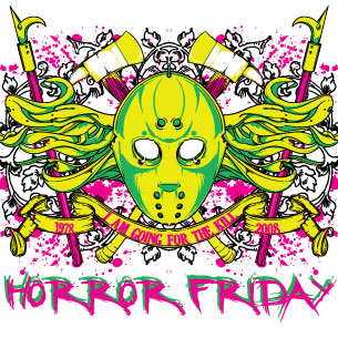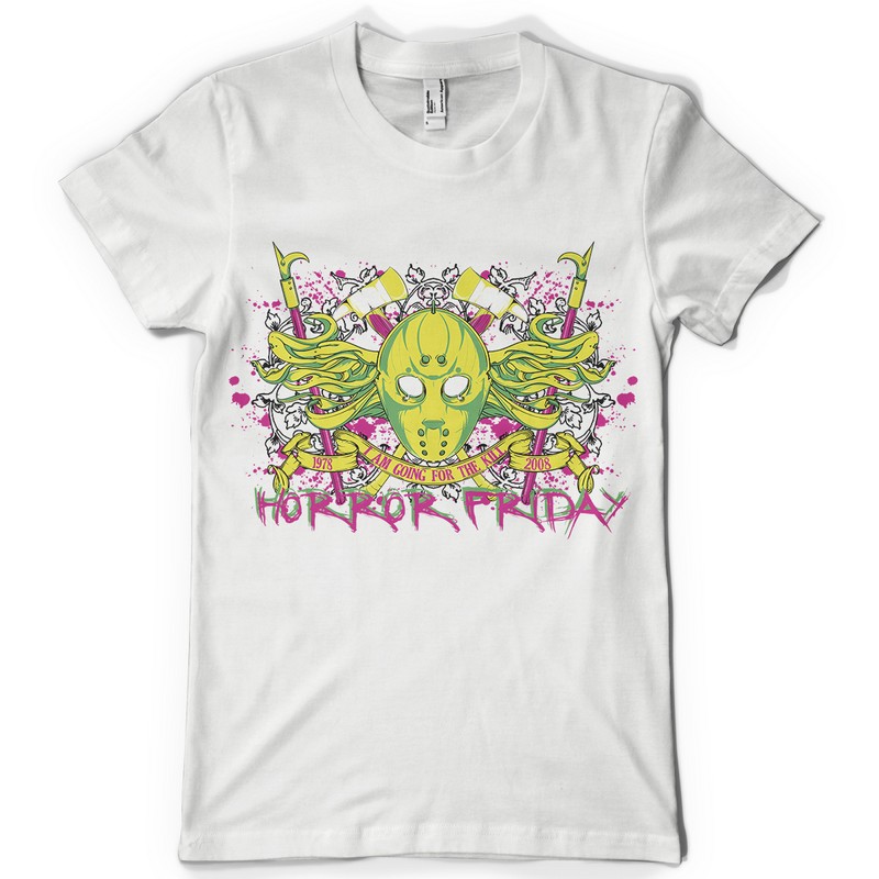 Horror Friday digital design template in vector format, featuring detailed prison mask of 1978 now available for Adobe Illustrator, Adobe Photoshop and Corel Draw and can be used for digital printing and screenprinting .