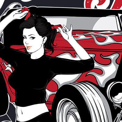 "Hot Rod Garage II" design is available in Ai, EPS, SVG and PNG. Ai, EPS & SVG files are well organised with every element on it's own layer. PNG file is with transparency. Can be used for digital printing and screenprinting.