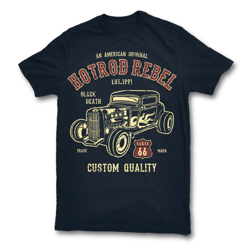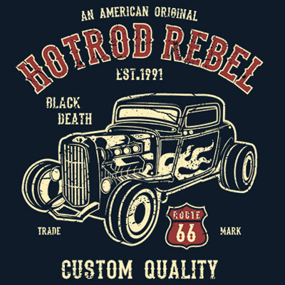 Hot Rod Rebel Tshirt Design Template based on vector files , such as AI and CDR also with PSD separated Layers file, the design has 2 color print, it can be used for digital printing and screen printing.