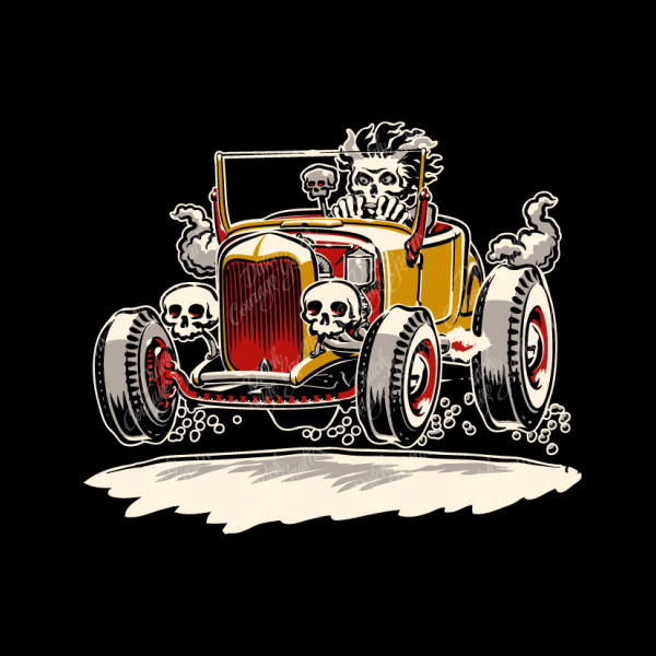 Hot rod roadster zombie apocalypse - cartoon - vector illustration