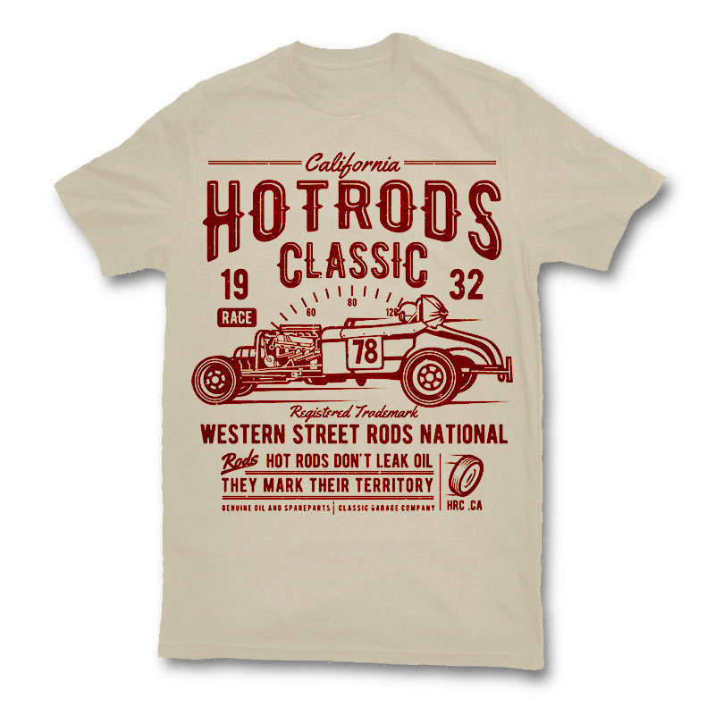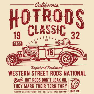 Hot Rods Race Classic Tshirt Design Template based on vector files , such as AI and CDR also with PSD separated Layers file, the design has 1 color print, it can be used for digital printing and screen printing.