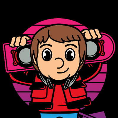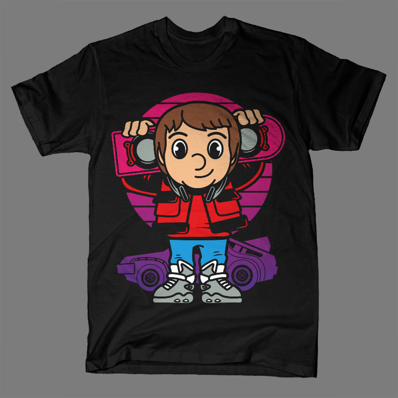 "Hover Guy" t-shirt design is inspired from 80s movies called "Back To The Future" i recomendtion print with DTG for make gradient color perfect. purple to pink color make it looks more 80s. file is eps 10.