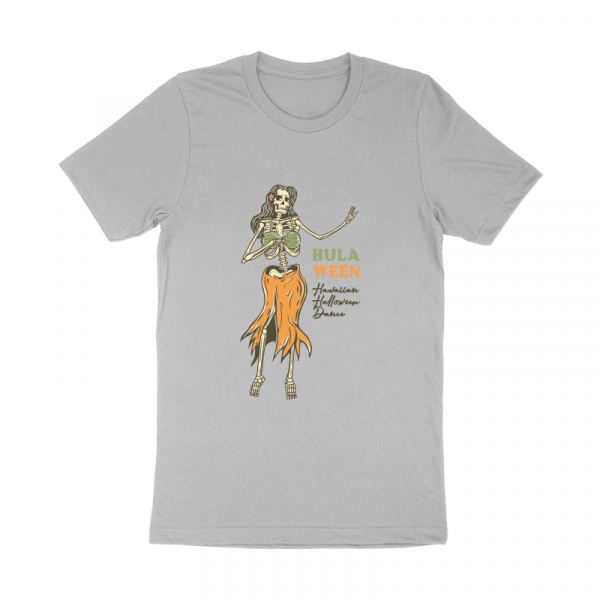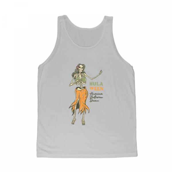 Hulaween, Hawaiian Halloween Dance is a vintage illustration that is suitable for apparel or merchandise about halloween, skull, skeleton, horror, hawaii, beach, summer, hula dance, holiday, trick or treat.