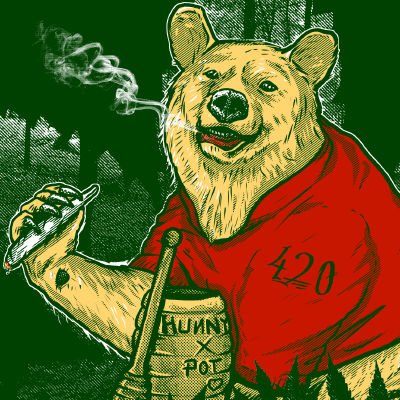 In the green of the forest, a certain bear dips its paw into honey. The munchies are stronger than ever, because it's spring and coming out of hibernation requires the good stuff.