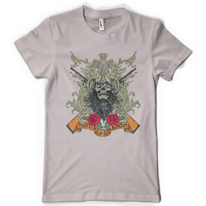 Digital design featuring detailed skull hunter . Hunting season template is available in vector format and can be used for digital printing and screenprinting. The file will be available for Adobe Illustrator, Adobe Photoshop and Corel Draw.