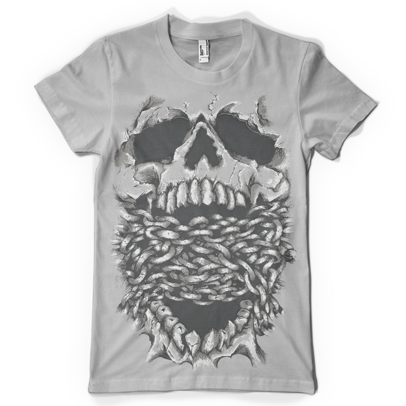 Skull illustration with a chain wrapped around its mouth which conveys silence. This inspirational custom design is composed of 3 color tones which includes a PSD file with 300 dpi.