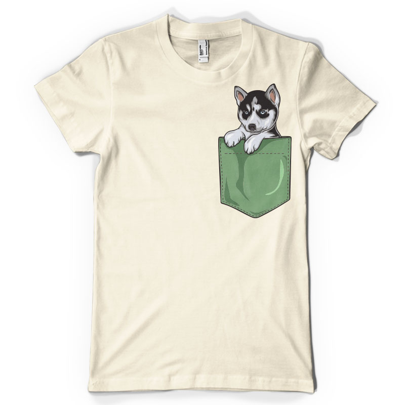 Husky pocket is an illustration made in Adobe Illustrator,featuring a little husky into a pocket.It can be used on digital printing,screen printing and T-shirt design and it is available in PSD,EPS,AI,CDR and PNG format file.