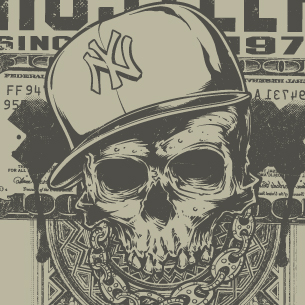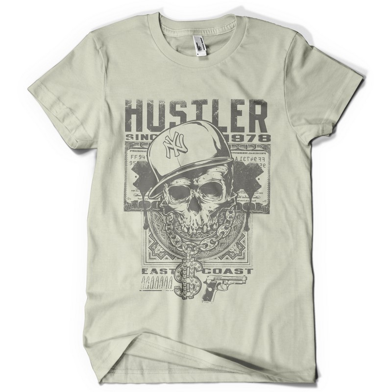 Hustler Skull graphic design template in vector format, featuring detailed badass skull now available for Adobe Illustrator, Adobe Photoshop and Corel Draw and can be used for digital printing and screenprinting .