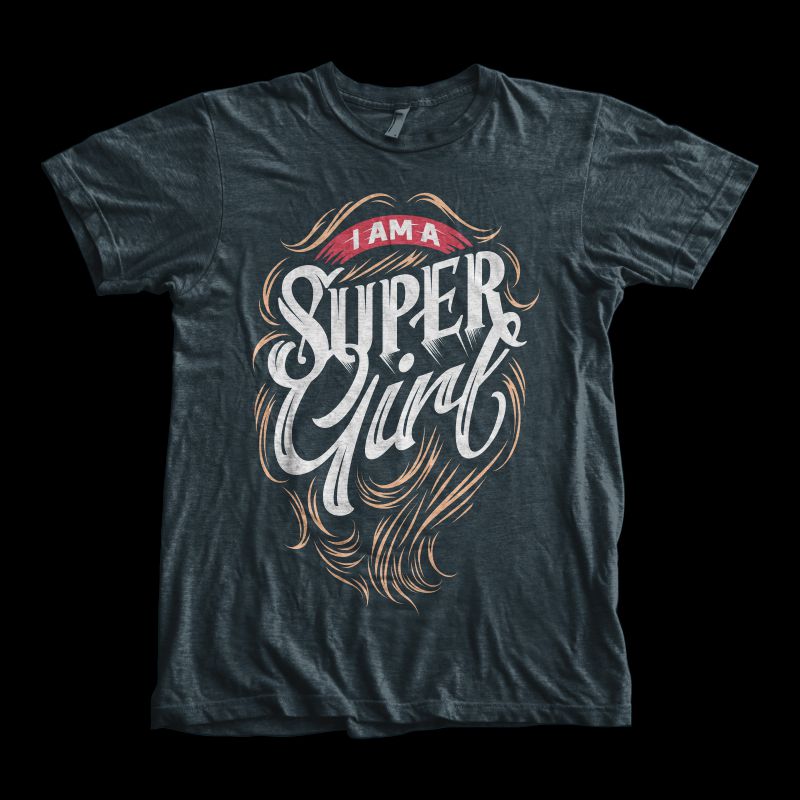 "I am a Super Girl" typography, tattoo style t-shirt design.