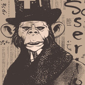 I am serious graphic design template in vector format, featuring detailed gentleman monkey now available for Adobe Illustrator, Adobe Photoshop and Corel Draw and can be used for digital printing and screenprinting .