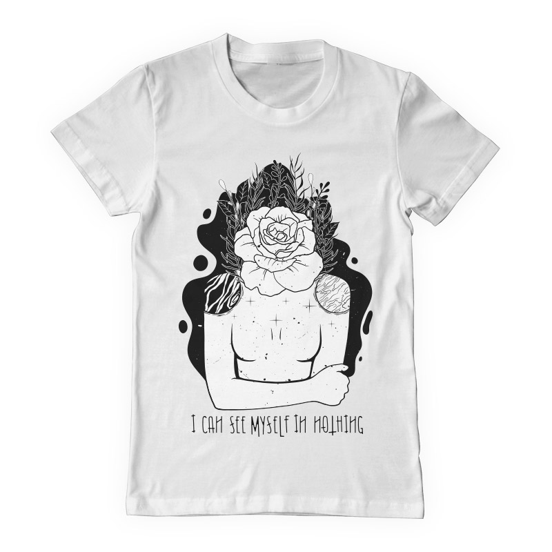 "I can see myself in nothing" design is available in high quality files, such as Ai,EPS, PDF and PNG. Vector files are organized on separate layers and all elements are editable. Can be used for both digital (DTG) and screenprinting.