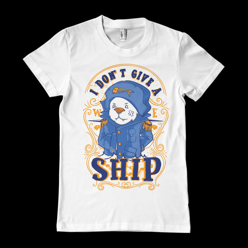 "I don't give a ship" design is available in EPS, SVG and PNG. EPS & SVG files are well organised with every element on it's own layer. PNG file is with transparency. Can be used for digital printing and screenprinting.