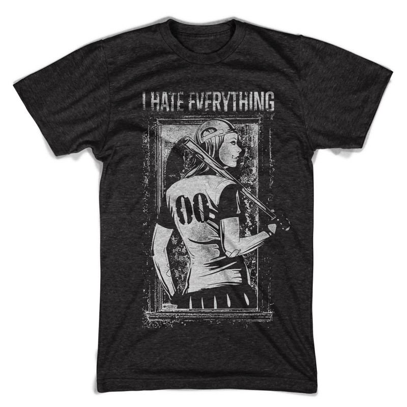 I hate everything graphic design template in vector format, featuring detailed baseball girl now available for Adobe Illustrator, Adobe Photoshop and Corel Draw and can be used for digital printing and screenprinting .