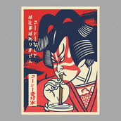 This design “i love coffee ukiyo e ” is made in Adobe Ilustrator is ready for print.