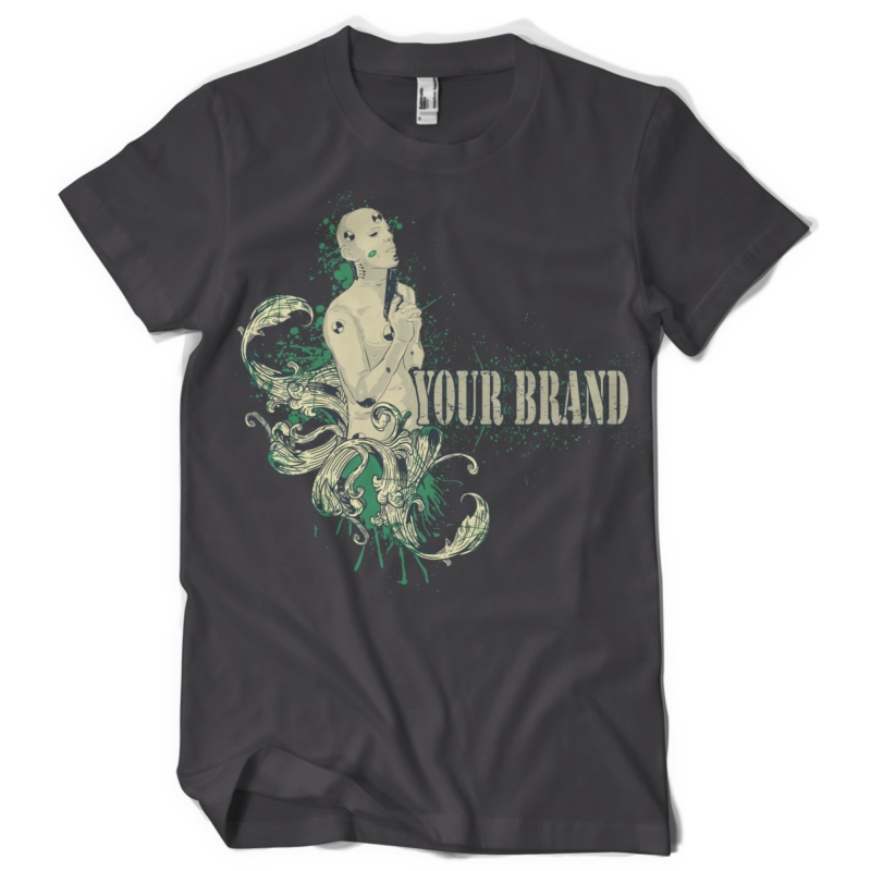Digital artwork featuring detailed man shooting himself and you can easily add your own brand. I Robot t-shirt template is available in vector format and can be used for digital printing and screenprinting. The file will be available for Adobe Illustrator, Adobe Photoshop and Corel Draw.