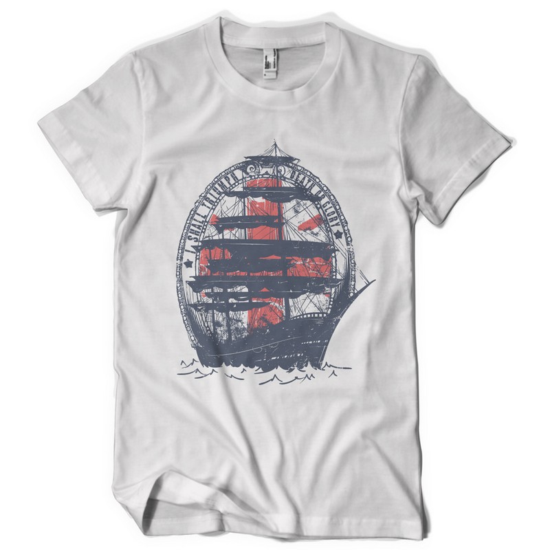 I shall triumph graphic design template in vector format, featuring detailed sailboat now available for Adobe Illustrator, Adobe Photoshop and Corel Draw and can be used for digital printing and screenprinting .