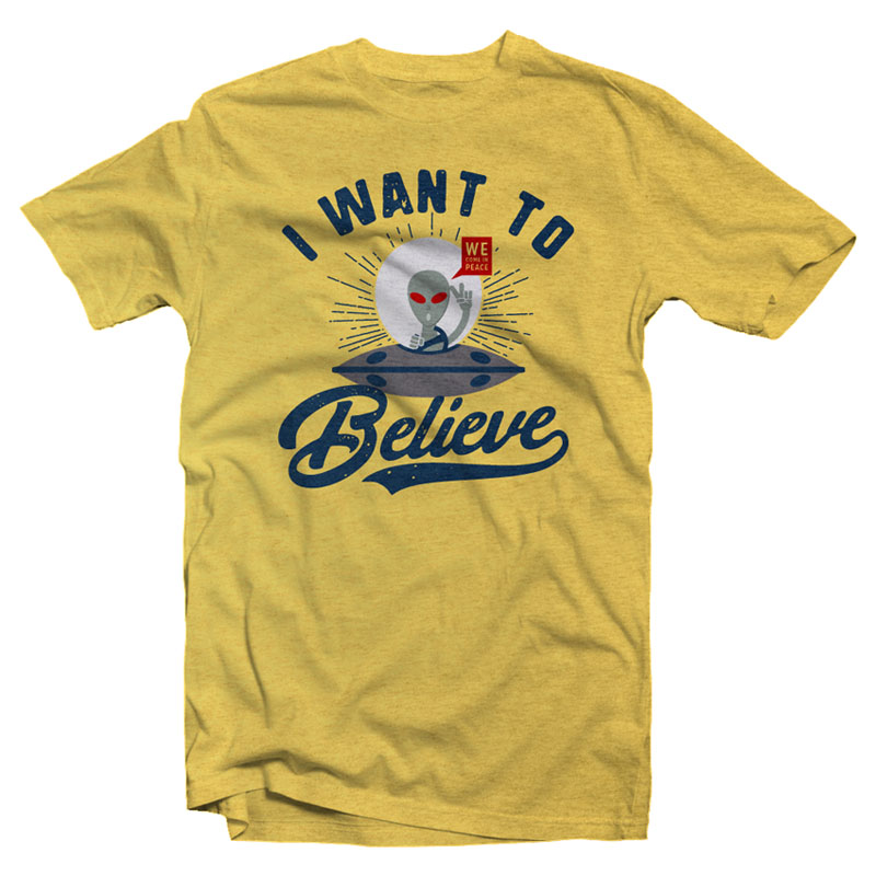 This design “ I want to Believe” is made in Adobe Ilustrator is ready for print.