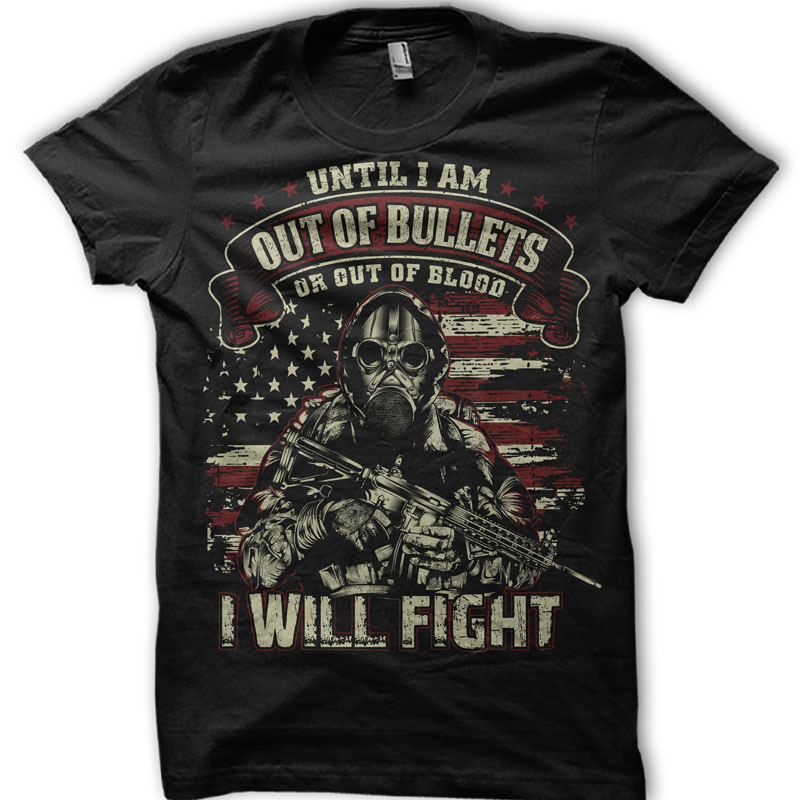 "Until I am Out Of Bullets Or Out Of Blood, I will Fight" Design Created with Corel X6 And Adobe Illustrator, Two Color Design, Can Be Used For Digital printing or screen prrinting...:)Enjoy