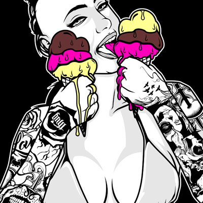 "Ice Cream Girl" is T-shirt design created with CorelDraw, now available for Adobe Illustrator, Adobe Photoshop, and CorelDraw. Can be used for digital printing and screen printing.