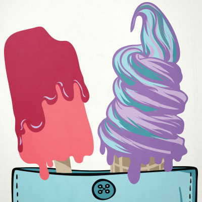Ice cream pocket is an illustration made in Adobe Illustrator,featuring 2 melting ice cream into a pocket.It is available in PSD,EPS,AI and PNG format file and it can be used on digital printing,screen printing and T-shirt design.