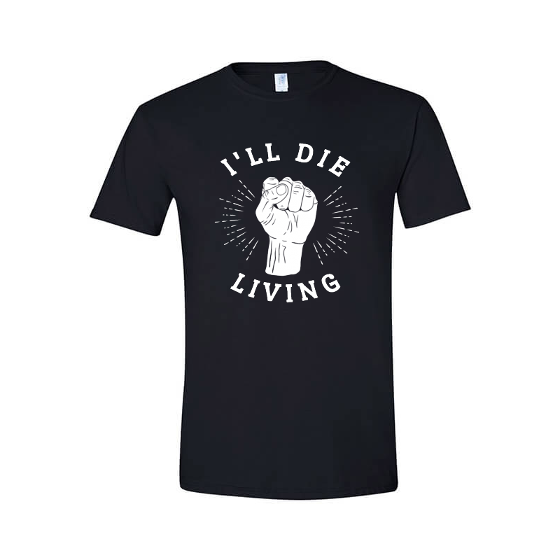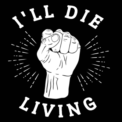 "I'll die living" design is available in high quality formats: