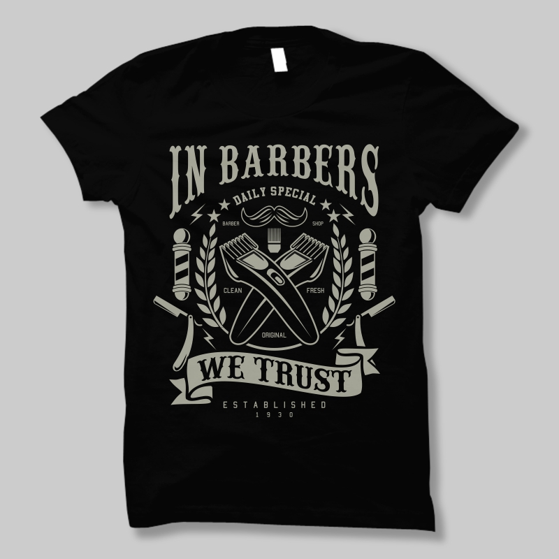 In Barbers We Trust Tshirt Design Template based on vector files , such as AI and CDR also with PSD separated Layers file, the design has 1 color print, it can be used for digital printing and screen printing