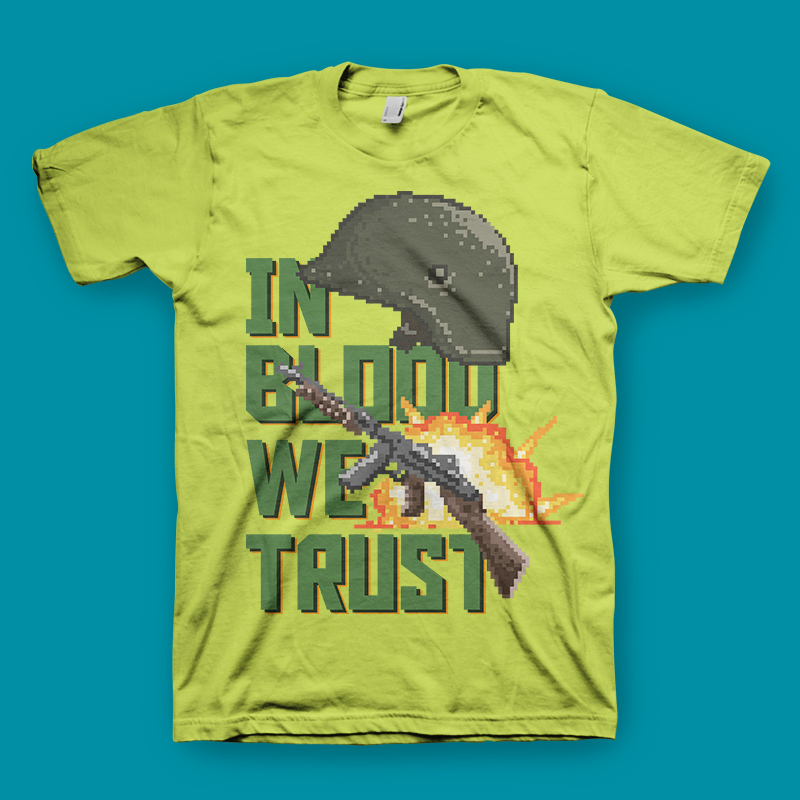 This artwork inspired from the 80's classic video game console with pixel art illustration mixed with quote about war, belief and violence of humanity.