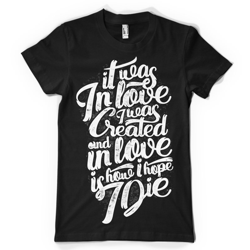 "In Love" T-shirt design featuring typography style quote, with distressed details. The files available are suitable for Adobe Illustrator and Adobe Photoshop and can be used for digital printing and screenprinting.