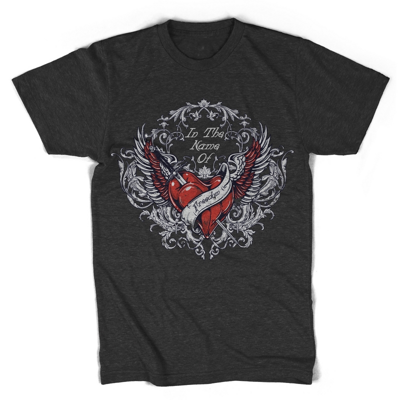 Int he name of freedom digital artwork in vector format, featuring detailed dagged heart angel now available for Adobe Illustrator, Adobe Photoshop and Corel Draw and can be used for digital printing and screenprinting .