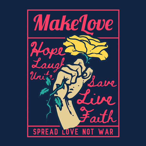 Hand holding flower for peace with propaganda vintage style poster illustration. Ready to print on t-shirt.