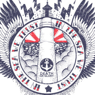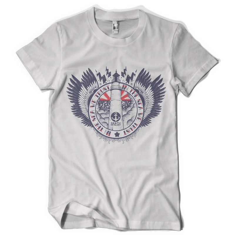 In the sea we trust graphic design template in vector format, featuring detailed now available for Adobe Illustrator, Adobe Photoshop and Corel Draw and can be used for digital printing and screenprinting .