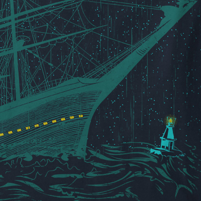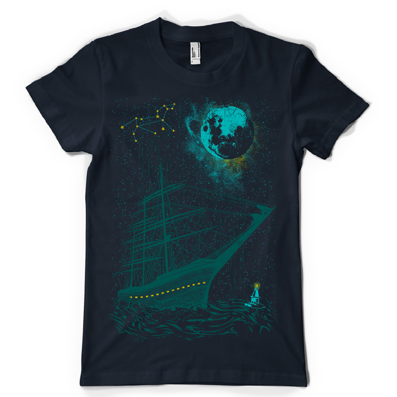 In The Storm t-shirt design features a Sailing night detailed screen print now available for Adobe Illustrator, Adobe Photoshop and Corel Draw and can be used for digital printing and screenprinting