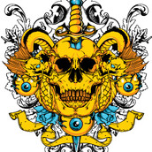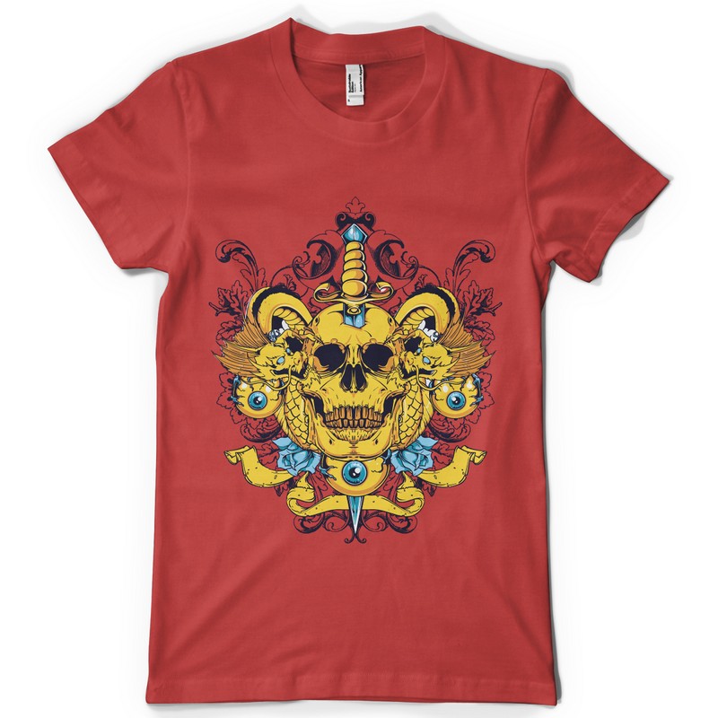 Graphic design featuring detailed daggered skull . In your head template is available in vector format and can be used for digital printing and screenprinting. The file will be available for Adobe Illustrator, Adobe Photoshop and Corel Draw.