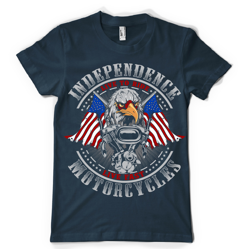 Independence design features a american motor detailed screen print now available for Adobe Illustrator, and Corel Draw and can be used for digital printing and screenprinting.