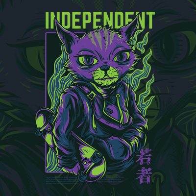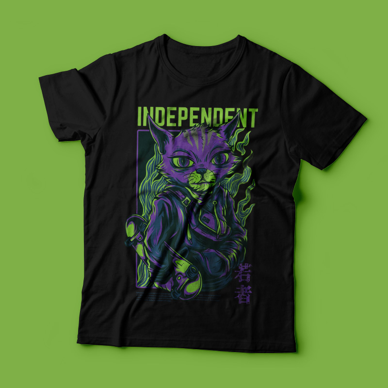 Independent Cat T-Shirt Design it's a character design that was made in Adobe Illustrator. Based on vector file, easy to resize and edit. File features AI, EPS, and PNG all in zip, CMYK color mode and 4 color. Can be used for digital printing and screen printing.