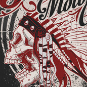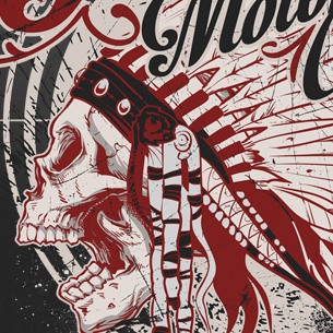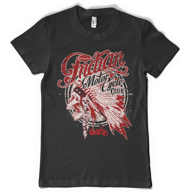 Indian Motorcycle Club printed t-shirt features a detailed screen print of indian skull now available for Adobe Illustrator, Adobe Photoshop and Corel Draw and can be used for digital printing and screenprinting .