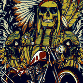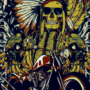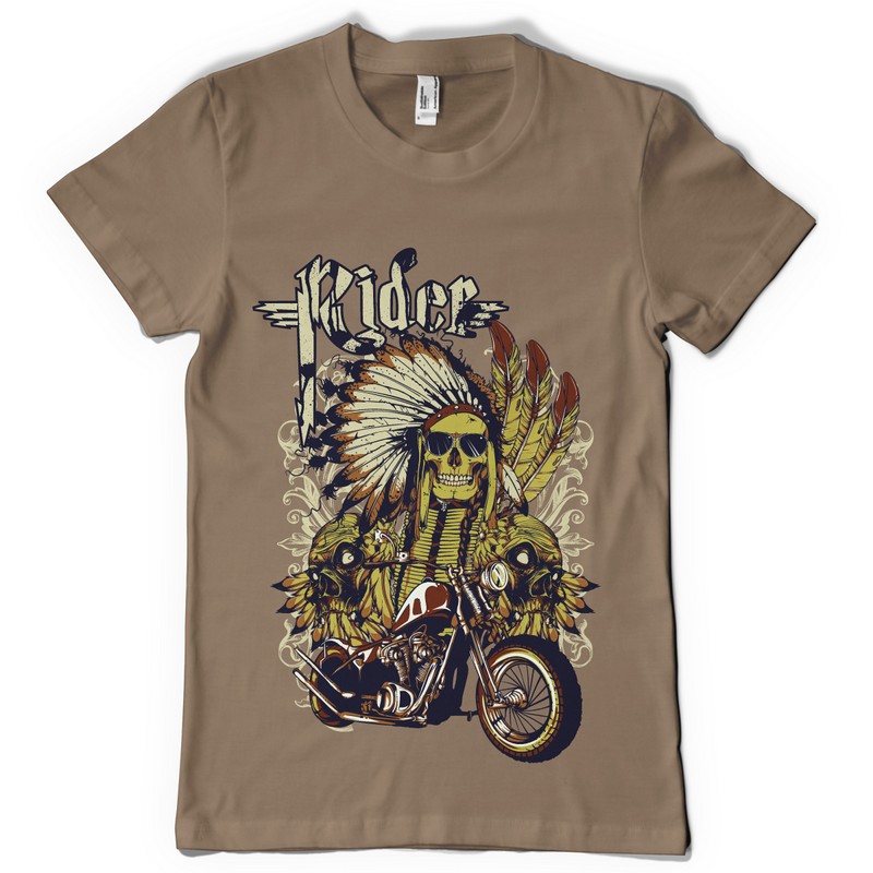 Indian rider digital design template in vector format, featuring detailed badass indian skull now available for Adobe Illustrator, Adobe Photoshop and Corel Draw and can be used for digital printing and screenprinting .